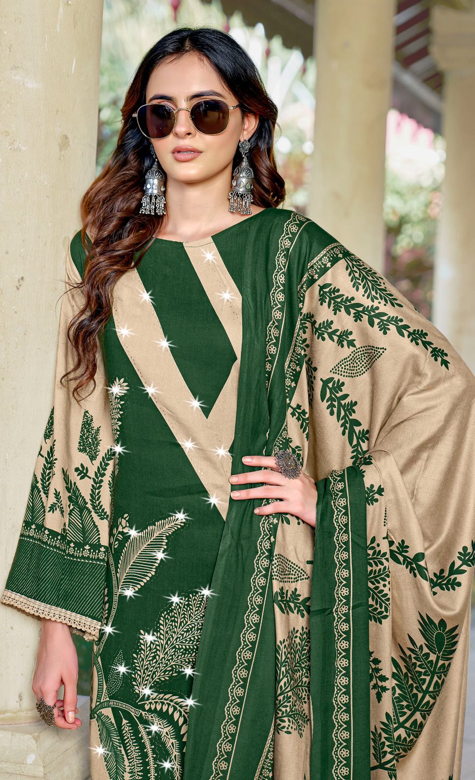 Choose cotton fabric suit with its unique prints and soft pastel shades for a beautiful better vibe. Which can be Paired with sandals and simple earrings for beautiful amazing looks.