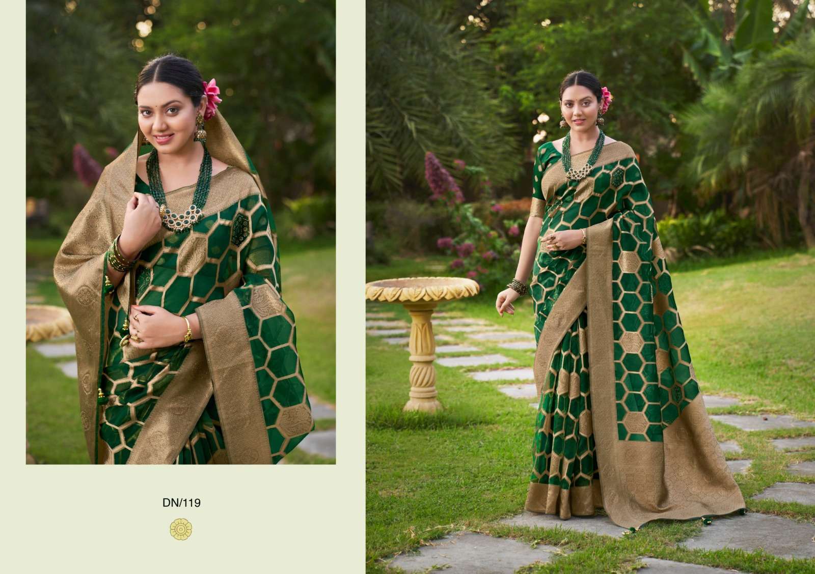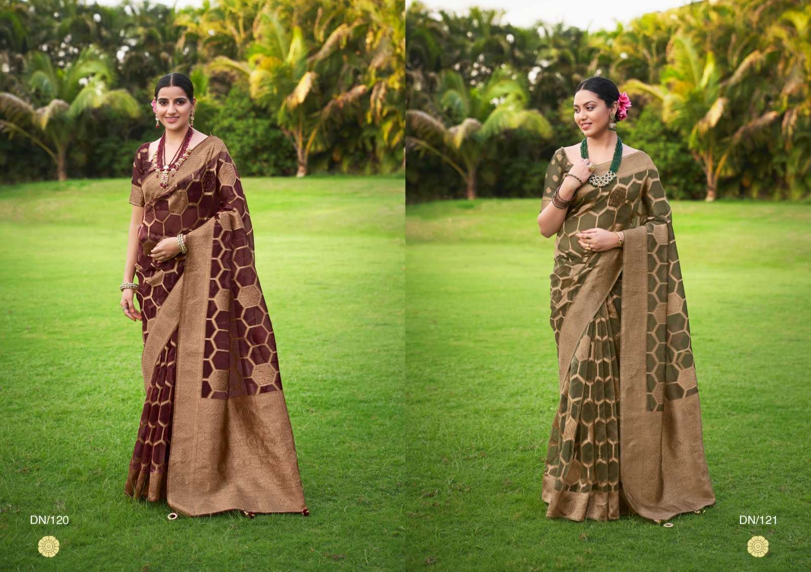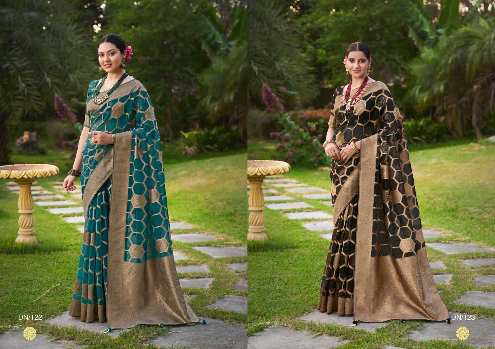 A Designer Collection that speaks about Volumes. 5d designer tana bana vol 4 series 119-124 Silk Organza saree catalogue is more than just a clothing collection; it speaks the story of fashion, comfort, and culture.