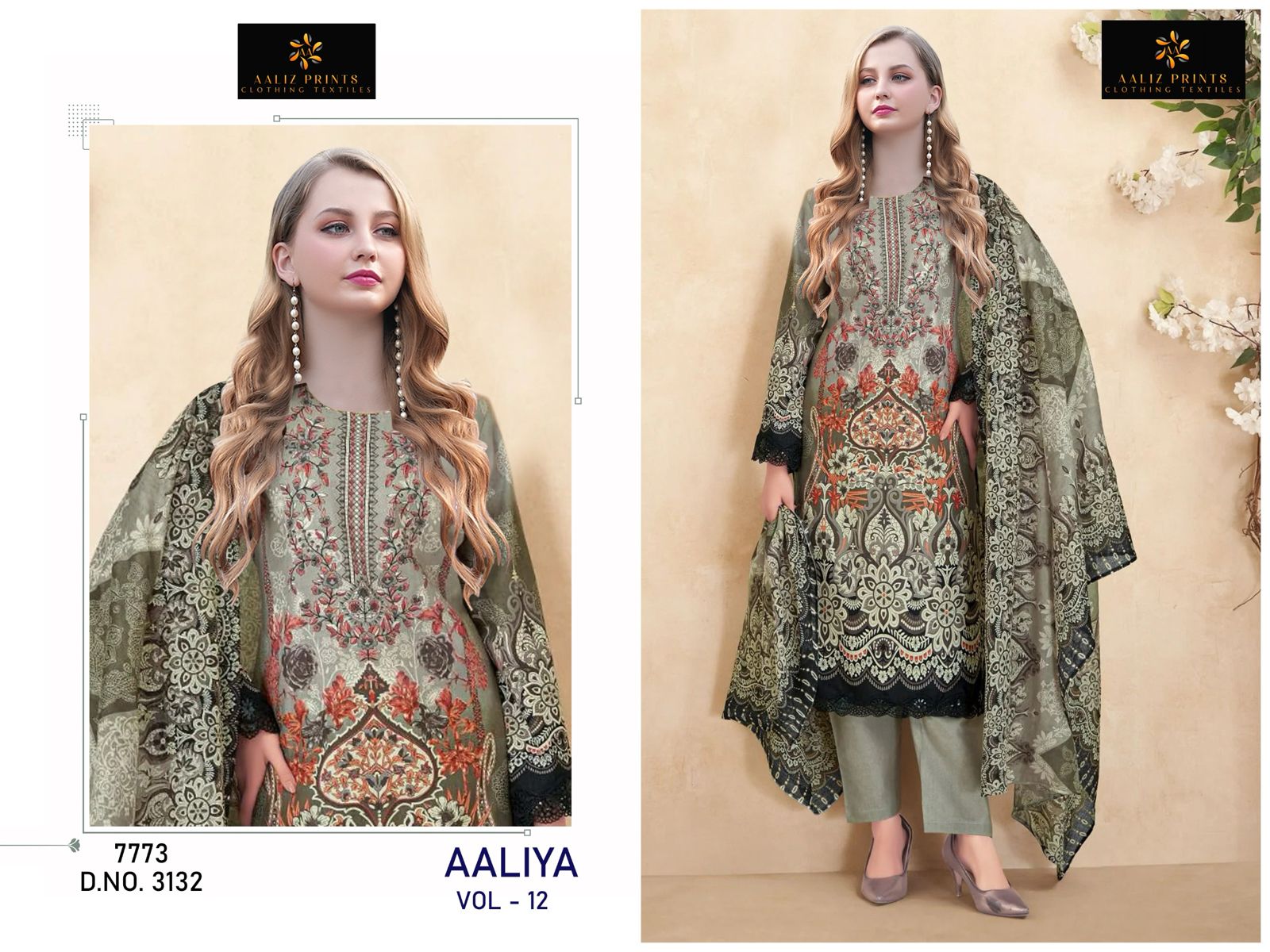 AALIZ PRINTS AALIYA VOL 12 contains superior Fabrics, with perfect craftsmanship makes it one most best quality suits catalogue. Best commitment to ungearing quality.