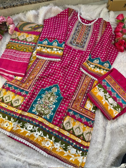 Choose cotton fabric suit with its unique prints and soft pastel shades for a beautiful better vibe. Which can be Paired with sandals and simple earrings for beautiful amazing looks.