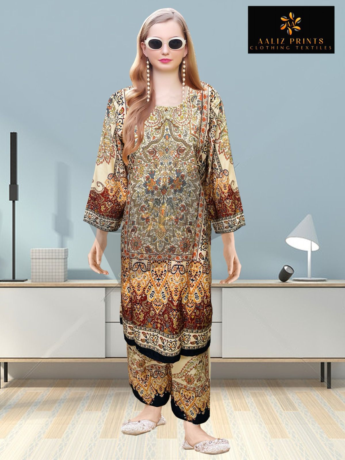 AALIZ PRINTS CO-ORD SET contains superior Fabrics, with perfect craftsmanship makes it one most best quality suits catalogue. Best commitment to ungearing quality.