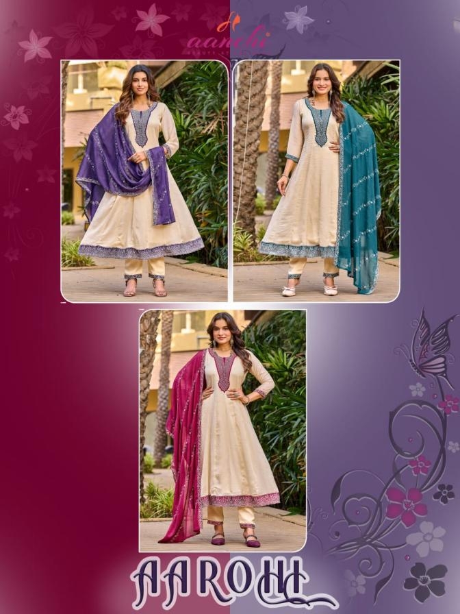 aanchi aarohi rangoli crush readymade anarkali wholesale suit suitable for both variety of styles and age groups. Can be made in different styles like Anarkali’s, sleek straight-cut suits, and classic salwar sets for every occasion. Whether you want it during your bride-to-be, a busy professional, or someone who loves ethnic wear, this designer suit makes you centre of extraction to everyone.