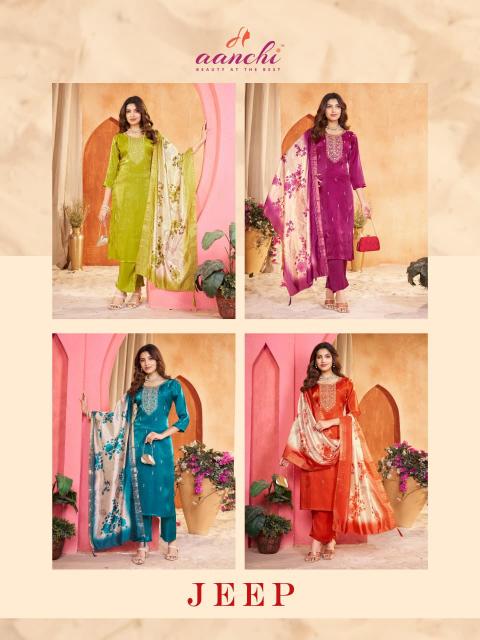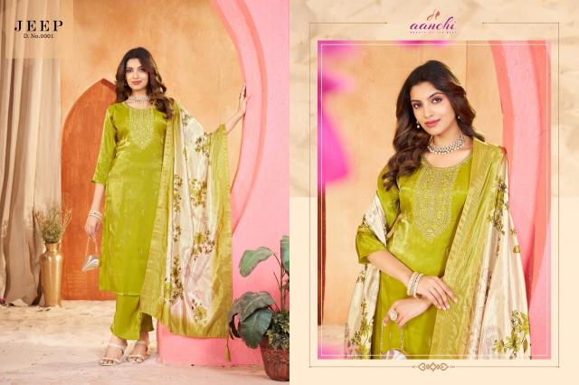 Aanchi Jeep vol 2 catalog kurtis online in india suitable for both variety of styles and age groups. Can be made in different styles like Anarkali’s, sleek straight-cut suits, and classic salwar sets for every occasion. Whether you want it during your bride-to-be, a busy professional, or someone who loves ethnic wear, this designer suit makes you centre of extraction to everyone.