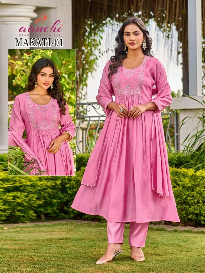 aanchi makati 01 & 02 mul chanderi wholesale readymade suit in surat has a suit design for every event, whether you are going for formal gathering or a casual get-together you can style the collection: