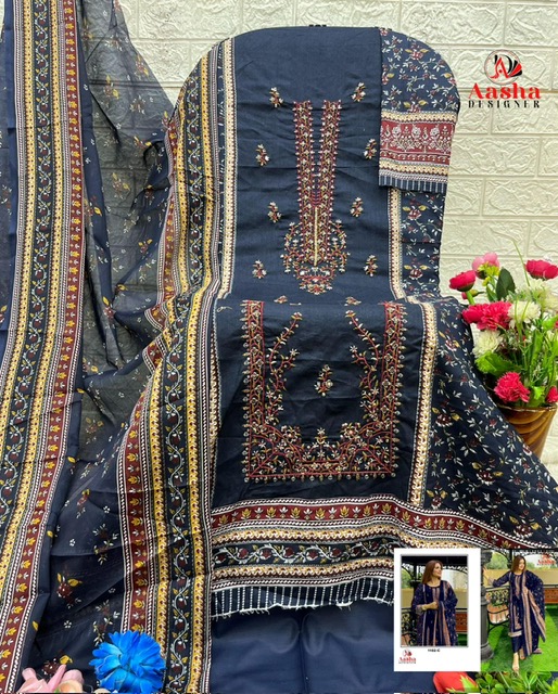 AASHA DESIGNER D.NO 1102 contains superior Fabrics, with perfect craftsmanship makes it one most best quality suits catalogue. Best commitment to ungearing quality.