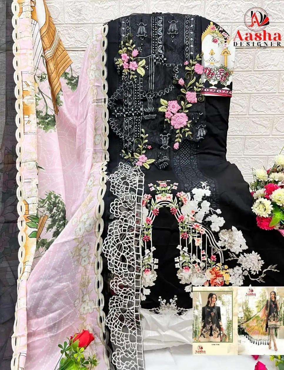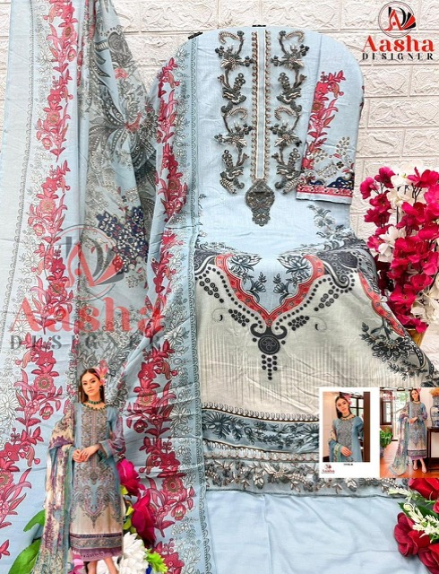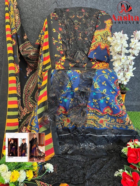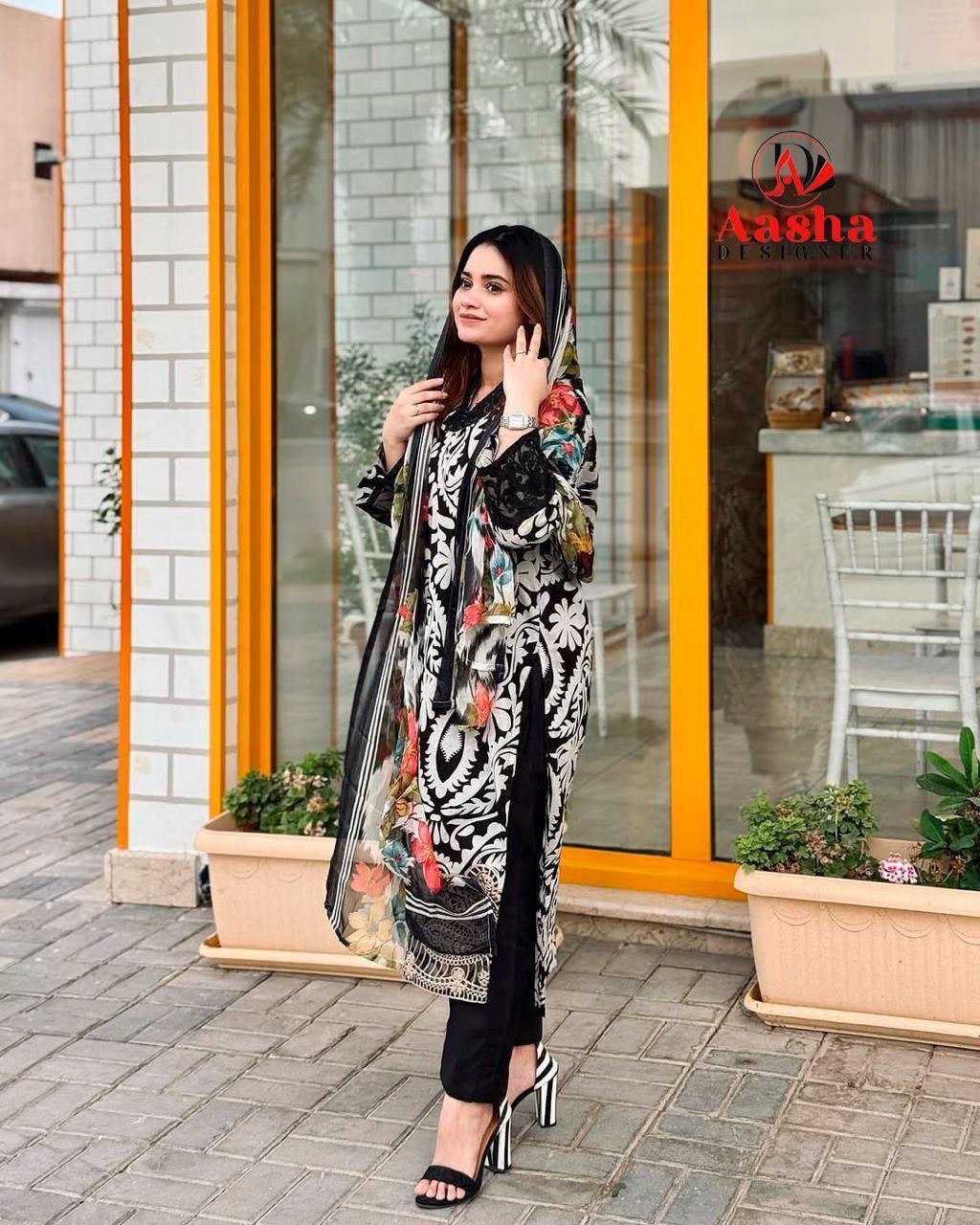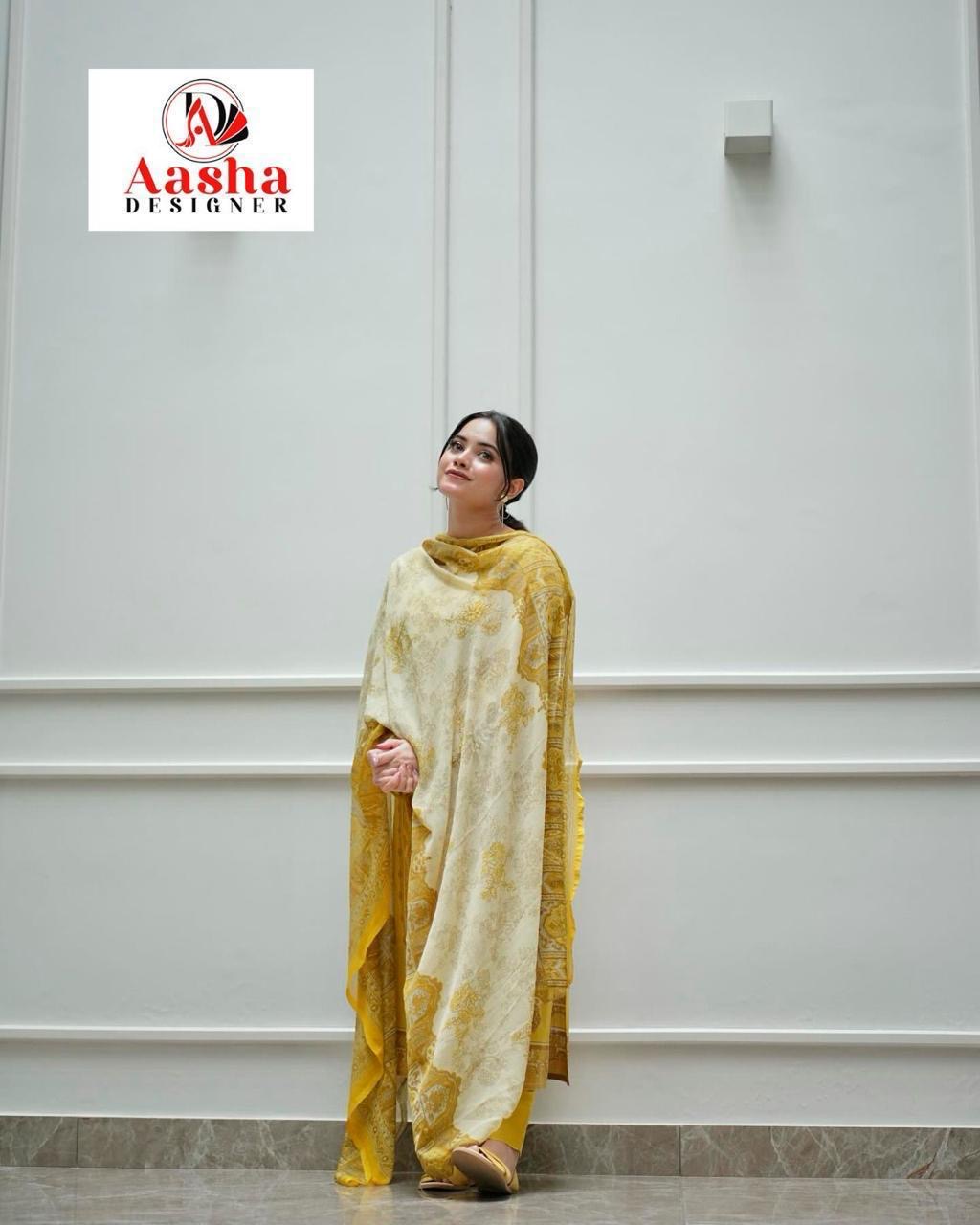 AASHA DESIGNER contains superior Fabrics, with perfect craftsmanship makes it one most best quality suits catalogue. Best commitment to ungearing quality.