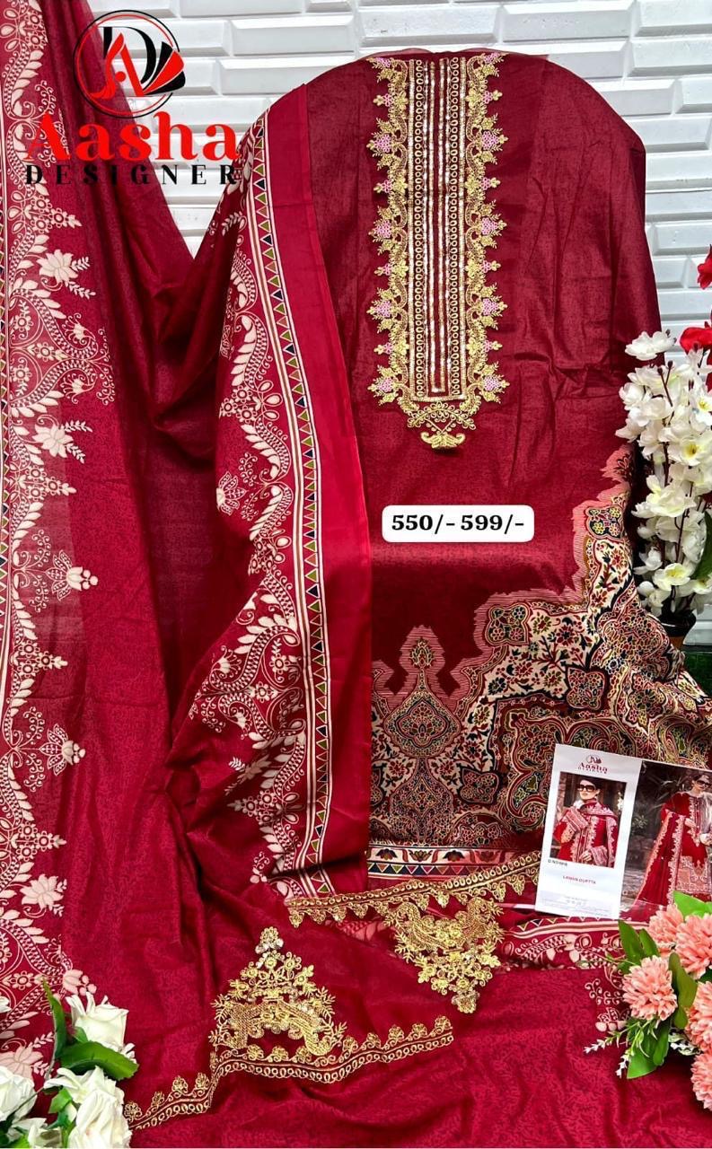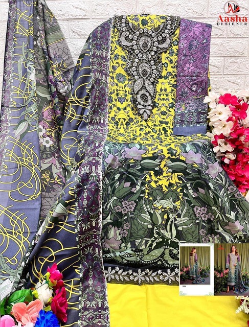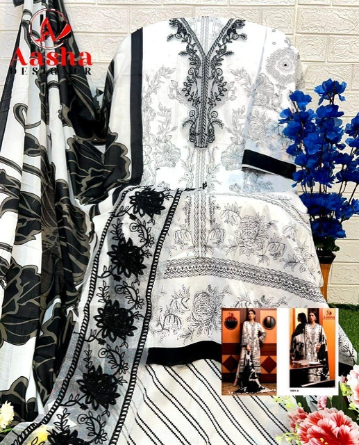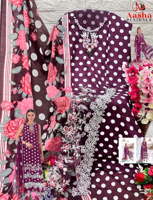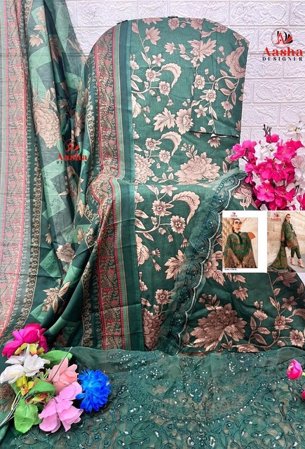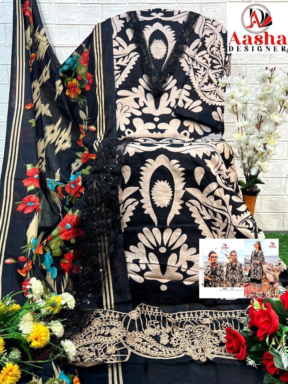 AASHA DESIGNER contains superior Fabrics, with perfect craftsmanship makes it one most best quality suits catalogue. Best commitment to ungearing quality.