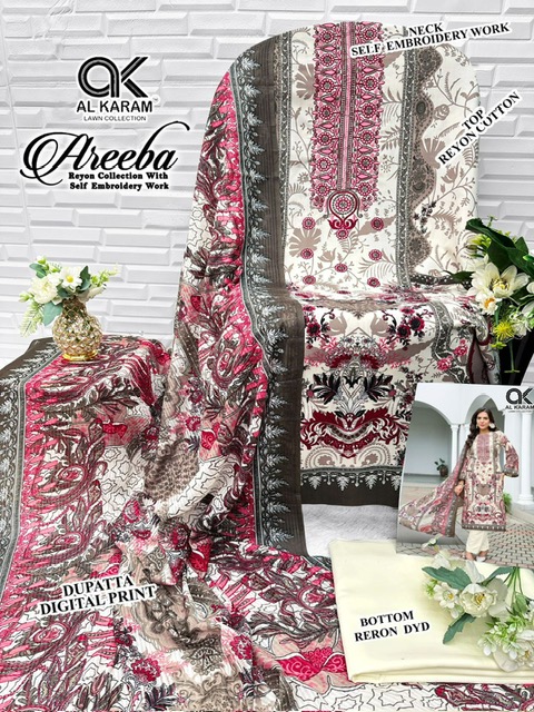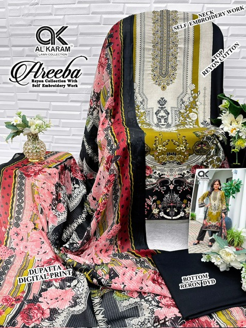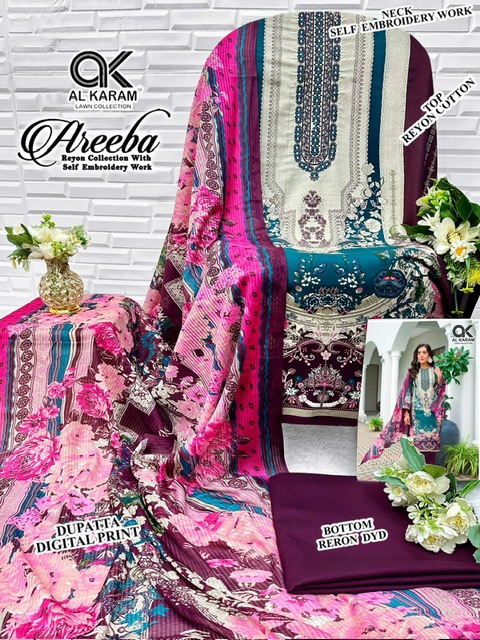 AL KARAM AREEBA contains superior Fabrics, with perfect craftsmanship makes it one most best quality suits catalogue. Best commitment to ungearing quality.