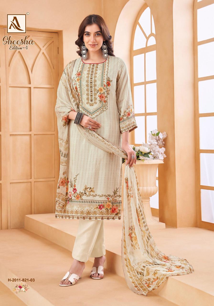 ALOK SUIT SHEESHA EDITION 4 contains superior Fabrics, with perfect craftsmanship makes it one most best quality suits catalogue. Best commitment to ungearing quality.