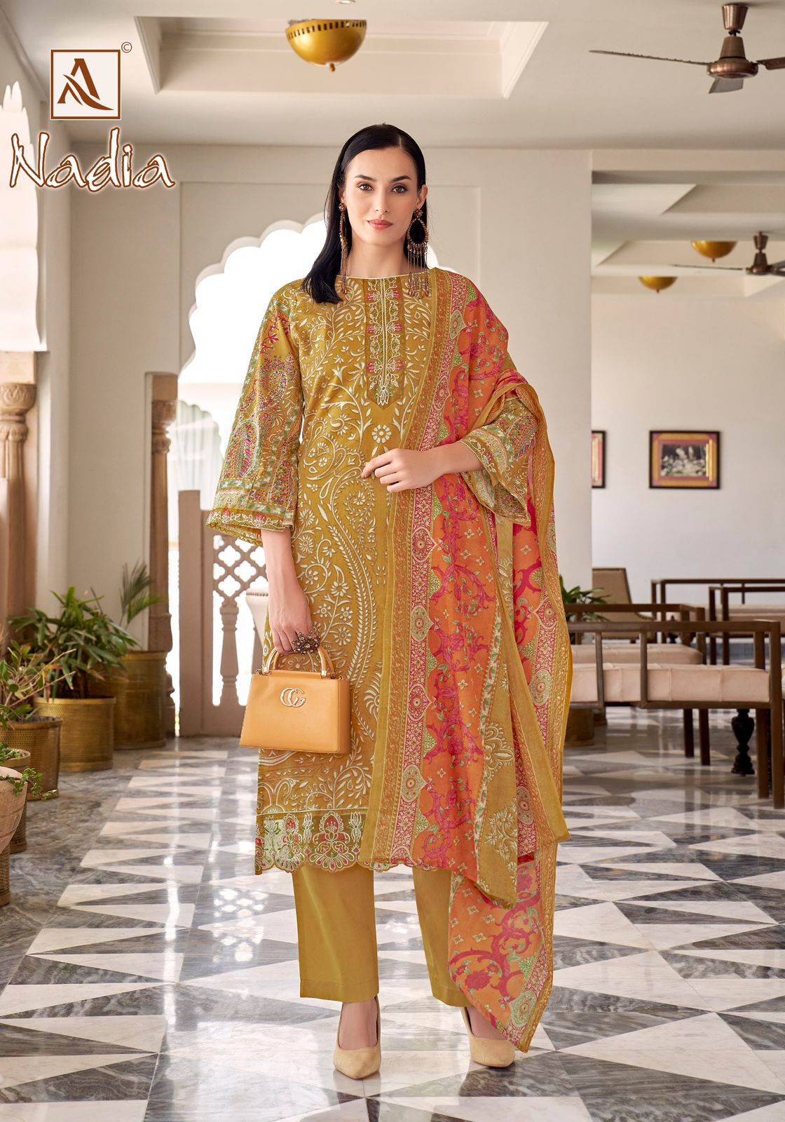 ALOK SUITS NADIA contains superior Fabrics, with perfect craftsmanship makes it one most best quality suits catalogue. Best commitment to ungearing quality.