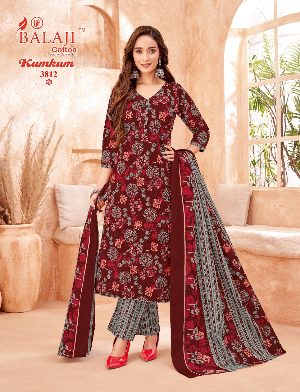 BALAJI COTTON KUMKUM VOL 38 contains superior Fabrics, with perfect craftsmanship makes it one most best quality suits catalogue. Best commitment to ungearing quality.
