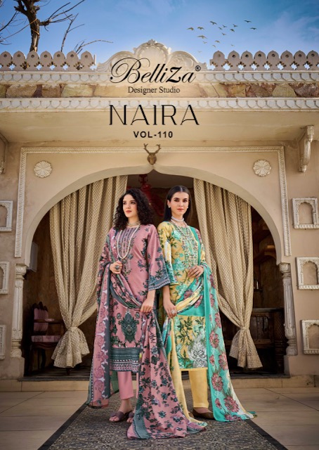 BELLIZA NAIRA VOL 110 contains superior Fabrics, with perfect craftsmanship makes it one most best quality suits catalogue. Best commitment to ungearing quality.
