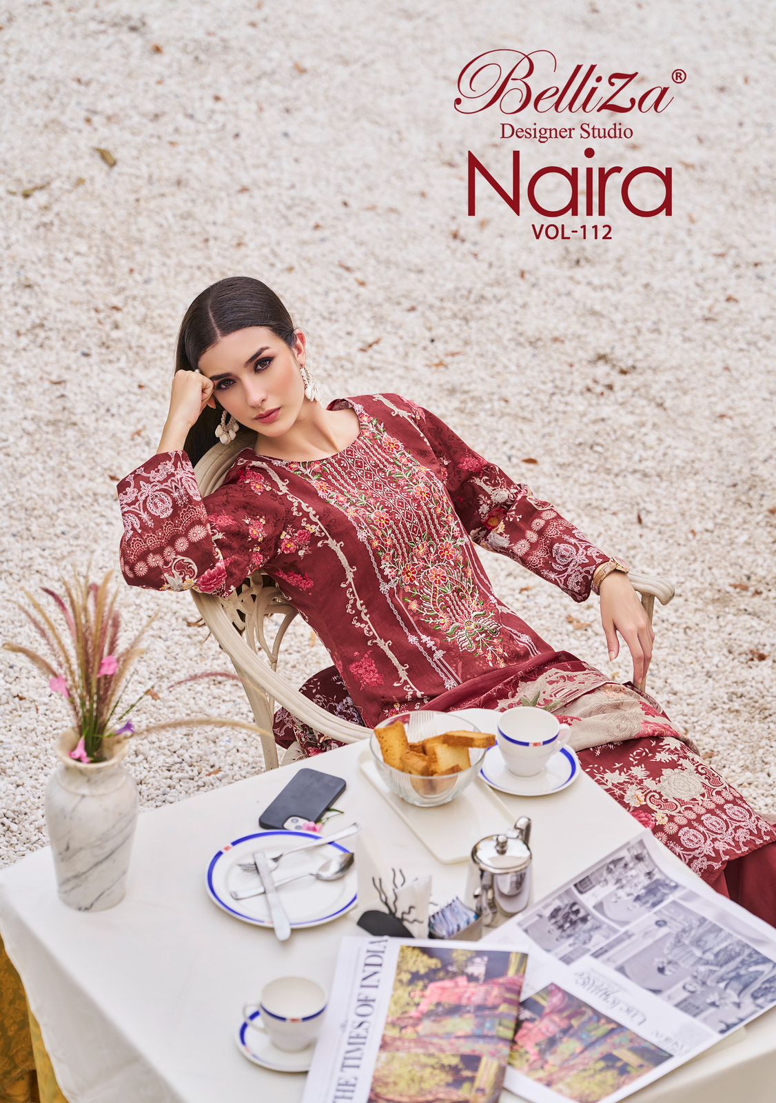 BELLIZA NAIRA VOL 112 contains superior Fabrics, with perfect craftsmanship makes it one most best quality suits catalogue. Best commitment to ungearing quality.