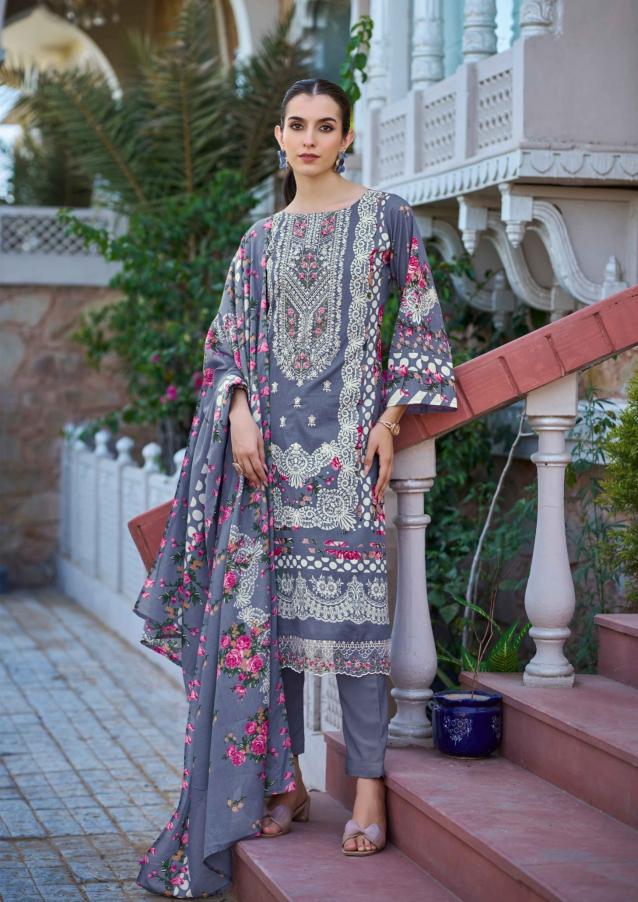 Belliza Safiya catalog dress material surat gujarat contains superior Fabrics, with perfect craftsmanship makes it one most best quality suits catalogue. Best commitment to ungearing quality.