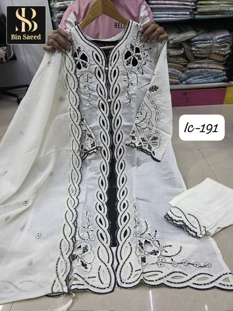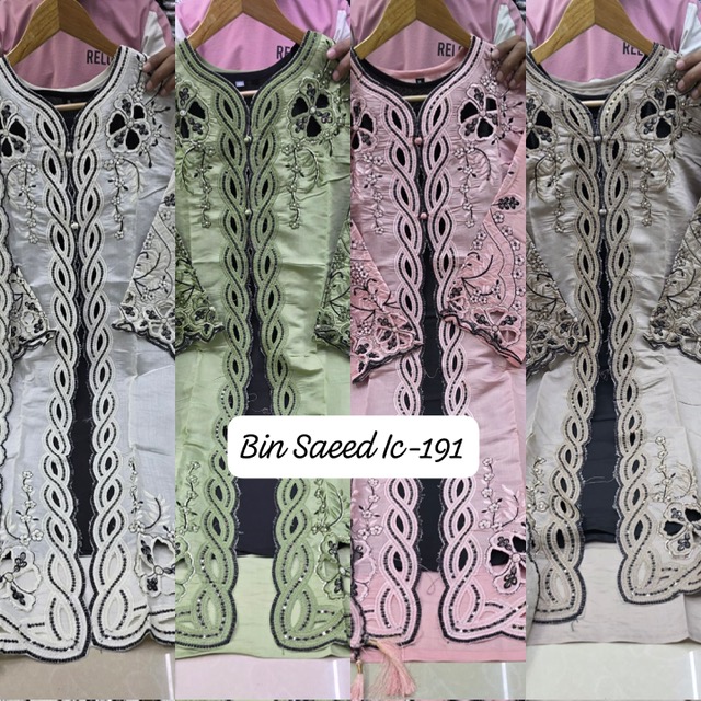 BIN SAEED IC-191 contains superior Fabrics, with perfect craftsmanship makes it one most best quality suits catalogue. Best commitment to ungearing quality.