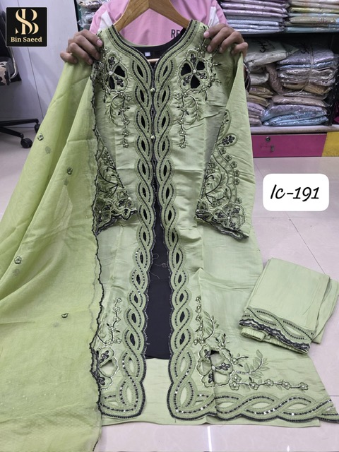 When it comes to traditional wear, quality truly plays and important role. Style never goes out of fashion. BIN SAEED IC-191 brings you a beautiful shade of style, design, and luxury that women have been loved for a long time.