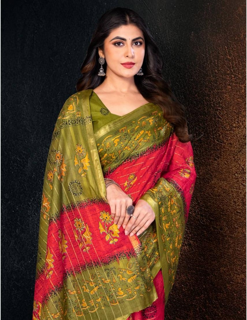 Saree – Pure Cotton Printed With Gold Patti | 5.50 Mtrs