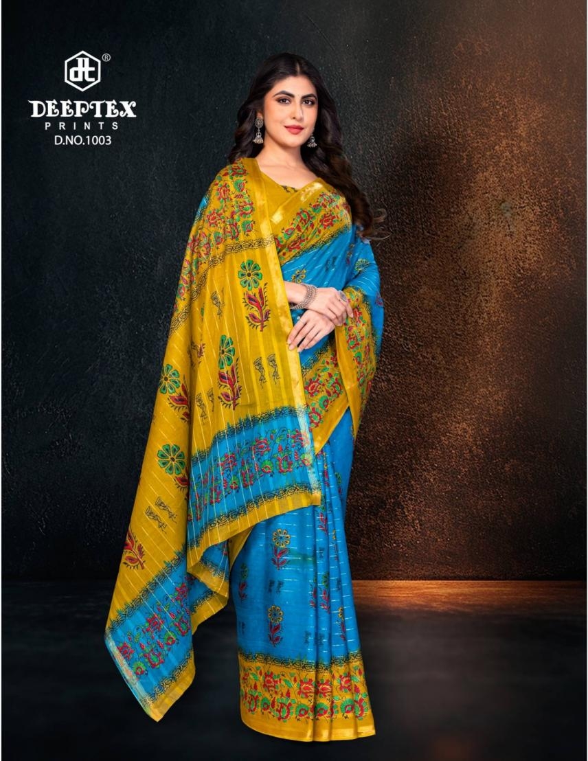 deeptex prints block beauty vol 1 series 1001-1010 cotton wholesale saree: Where Traditional Beauty Meets stylish charm.