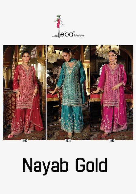 EBA LIFESTYLE NAYAB GOLD contains superior Fabrics, with perfect craftsmanship makes it one most best quality suits catalogue. Best commitment to ungearing quality.