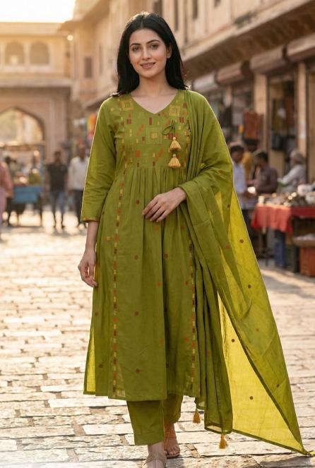 Celebrate every festival where it is Diwali, Eid, Navratri, or Raksha Bandhan in vibrant colour suits featuring with ethnic designs and elegant cuts. You will enjoy comfort without compromising with style, thanks to its breathable fabrics.