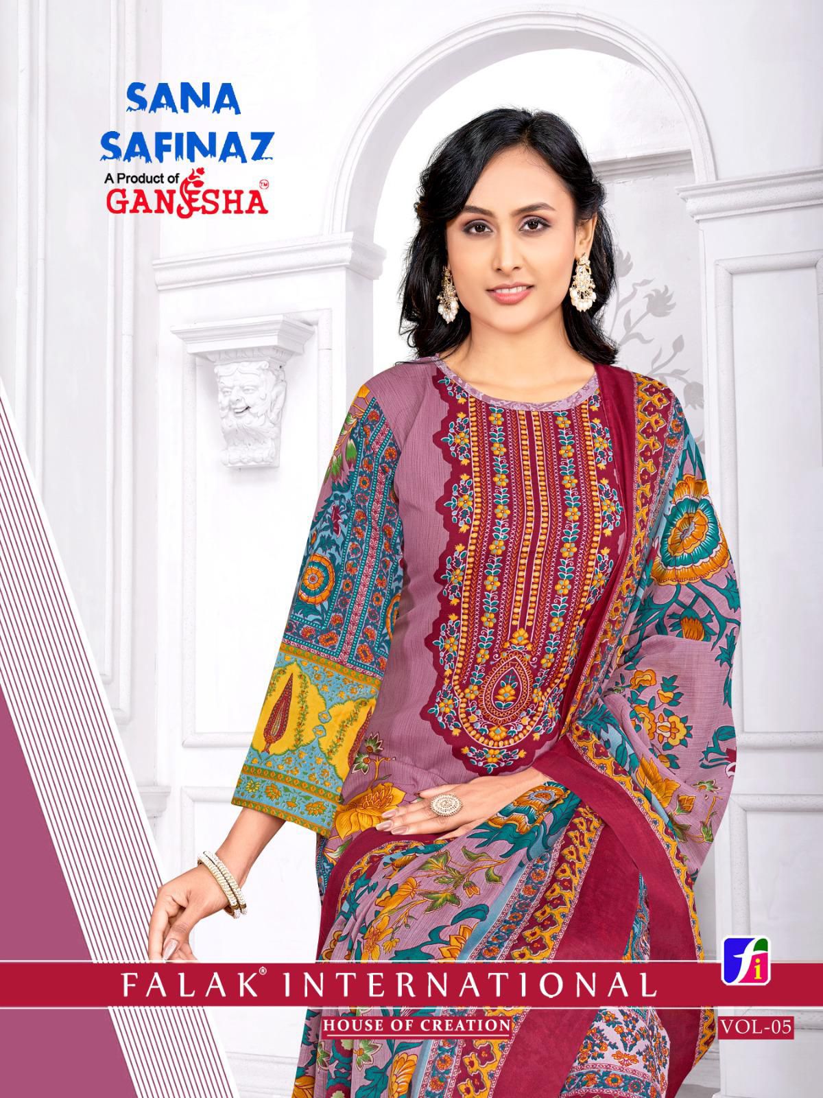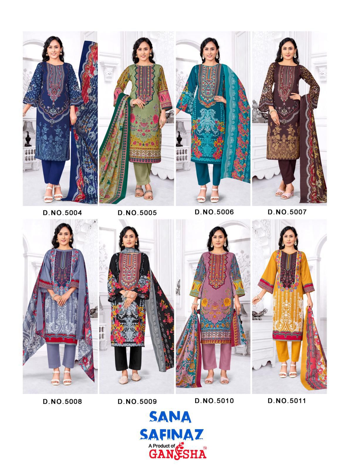 GANESHA SANA SAFINAZ VOL 5 contains superior Fabrics, with perfect craftsmanship makes it one most best quality suits catalogue. Best commitment to ungearing quality.