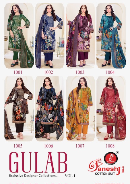 Whether you’re shopping for a festive celebration, a wedding function, or simply updating your ethnic wardrobe, the GANESHJI GULAB VOL 1 collection promises to add an effortless charm to your look. With vibrant prints, luxurious fabrics, and intricately designed patterns, each suit tells a story of elegance and sophistication.