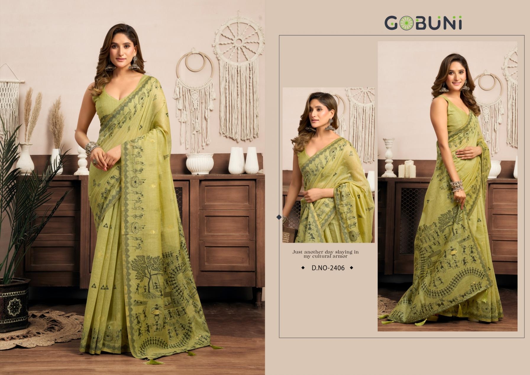 Collection Trend Highlights The gobuni sowmya series 2401 To 2406 modal worli work with zhallar traditional sarees in wholesale surat collection keeps the classic charm of its predecessors while continuously introducing new pieces to stay aligned with the latest trends.