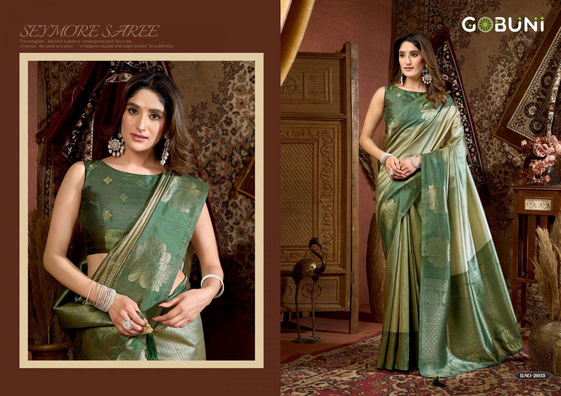 gobuni stella series 2901-2906 elegant kota silk wholesale sarees has a suit design for every event, whether you are going for formal gathering or a casual get-together you can style the collection: