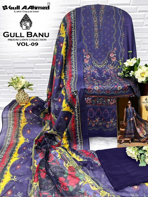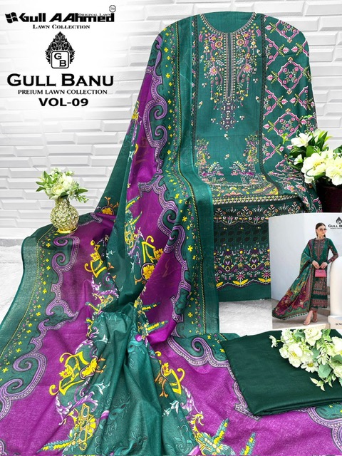 GULL AAHMED GULL BANU VOL 9 contains superior Fabrics, with perfect craftsmanship makes it one most best quality suits catalogue. Best commitment to ungearing quality.