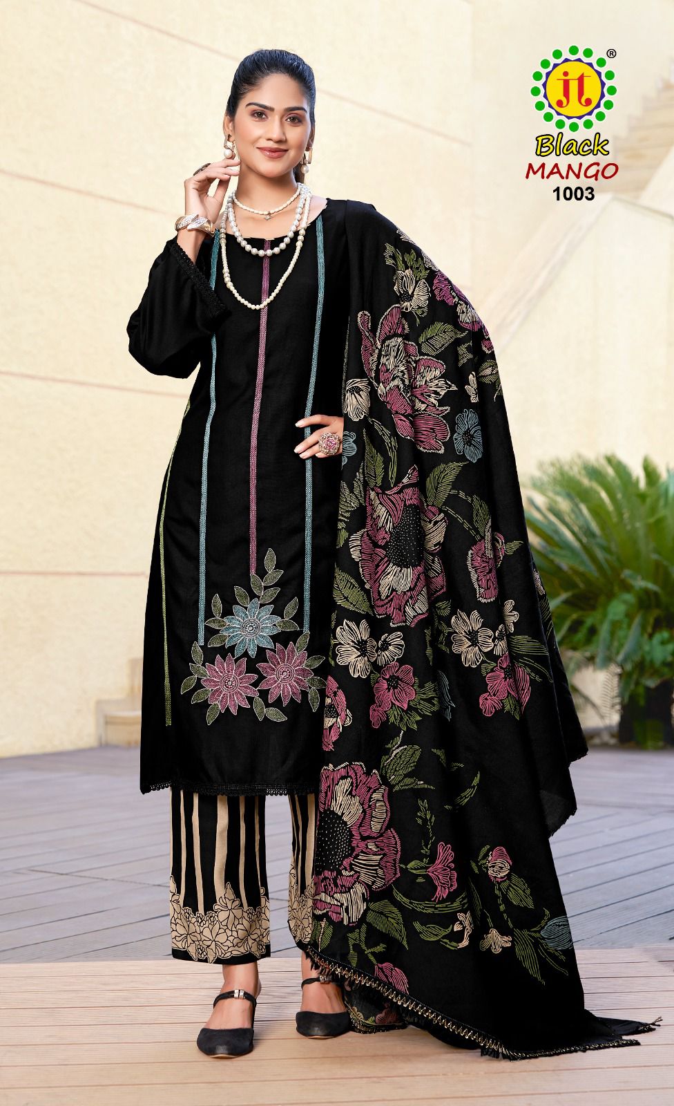 JAMATMAL TILOKCHAND BLACK MANGO suits suitable for gifts for birthdays, anniversaries, or weddings, thanks to their beautiful elegant presentation and timeless unique style.