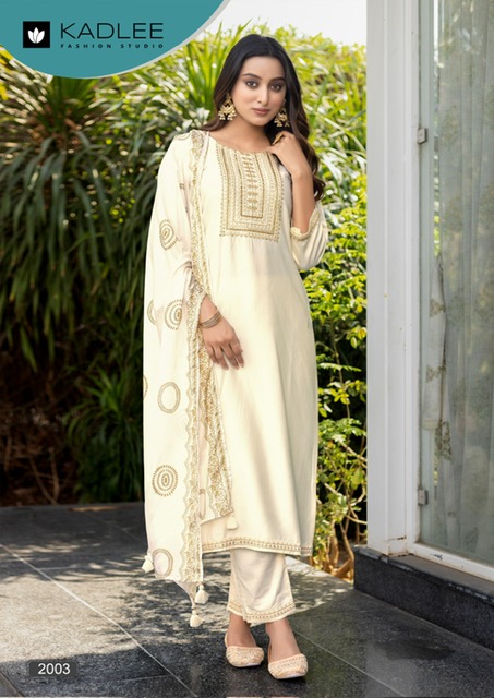 KADLEE FITOOR contains superior Fabrics, with perfect craftsmanship makes it one most best quality suits catalogue. Best commitment to ungearing quality.