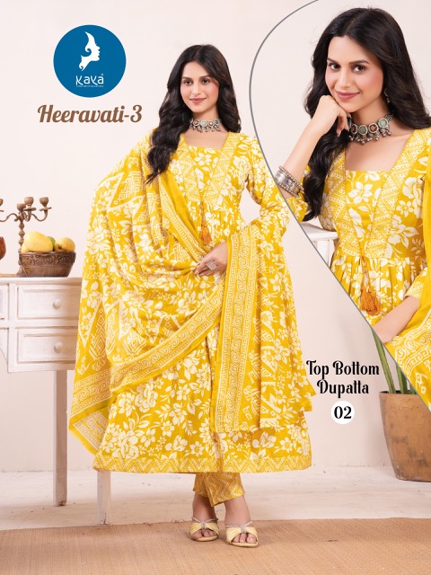 KAYA KURTI HEERAVATI VOL 3 contains superior Fabrics, with perfect craftsmanship makes it one most best quality suits catalogue. Best commitment to ungearing quality.