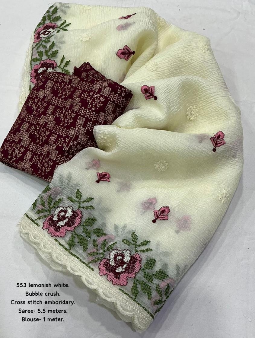 New wrinkle crush emboridary saree.