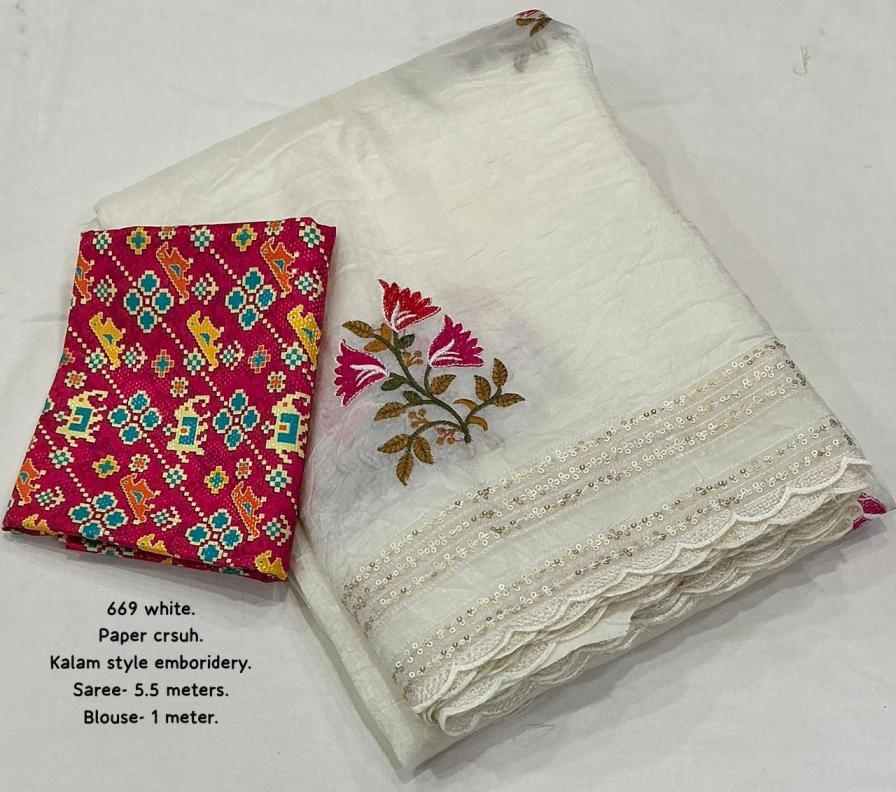 kc 669 elegance paper crush saree for womens contains superior Fabrics, with perfect craftsmanship makes it one most best quality suits catalogue. Best commitment to ungearing quality.