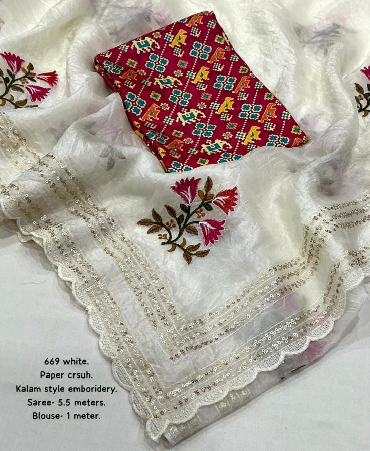A Designer Collection that speaks about Volumes. kc 669 elegance paper crush saree for womens catalogue is more than just a clothing collection; it speaks the story of fashion, comfort, and culture.