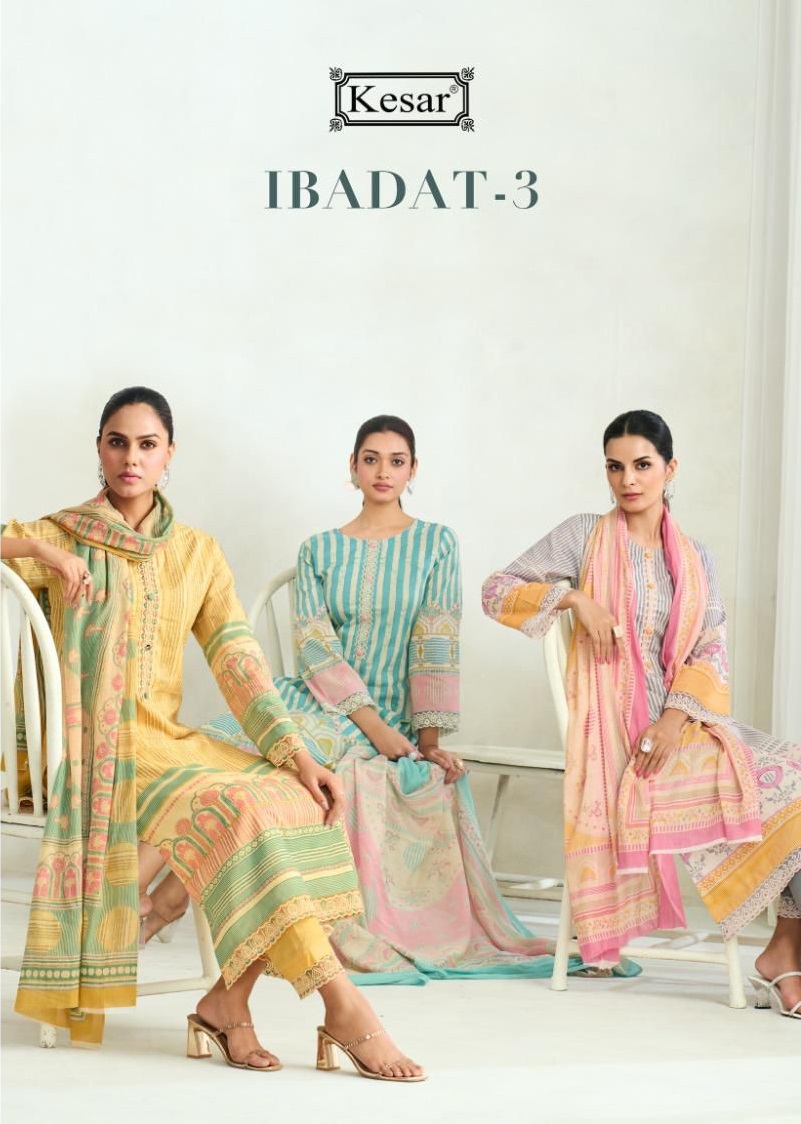 KESAR KARACHI IBAADAT VOL 3 contains superior Fabrics, with perfect craftsmanship makes it one most best quality suits catalogue. Best commitment to ungearing quality.