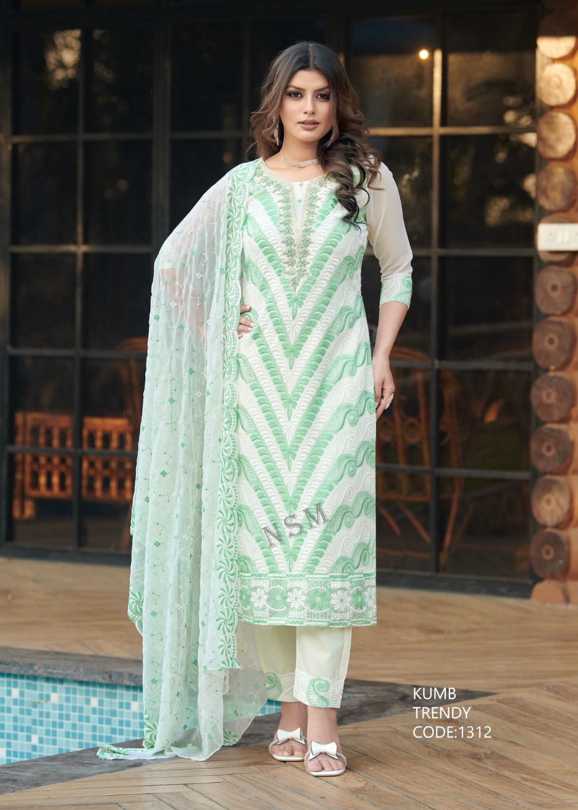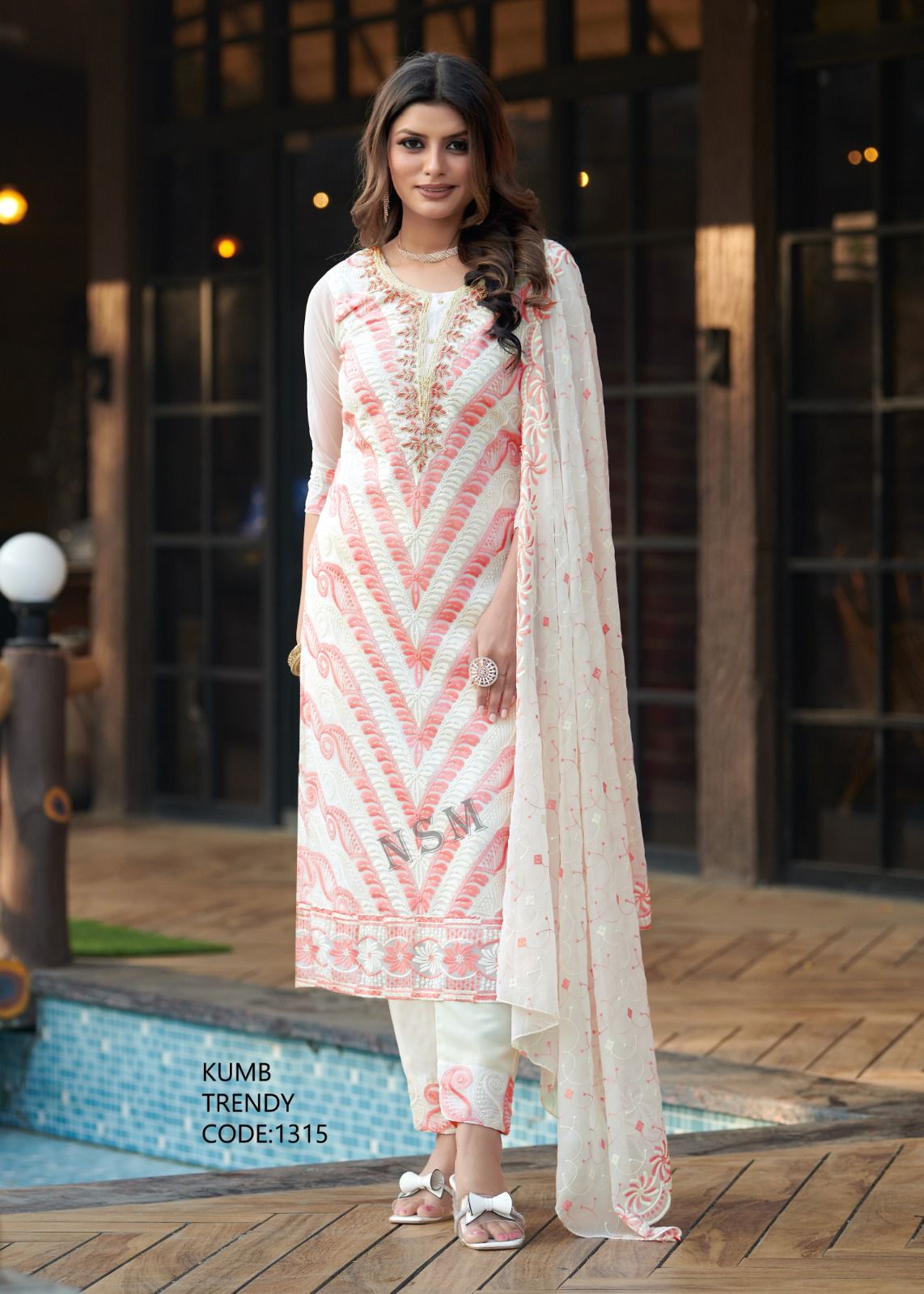 KUMB TRENDY contains superior Fabrics, with perfect craftsmanship makes it one most best quality suits catalogue. Best commitment to ungearing quality.