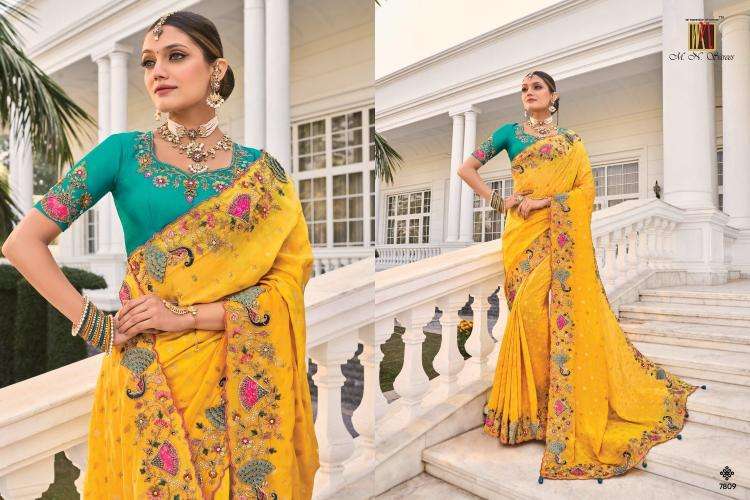 M n saree shahi poshak vol 3 series 7801-7809 crape jacquard wholesale saree contains superior Fabrics, with perfect craftsmanship makes it one most best quality suits catalogue. Best commitment to ungearing quality.