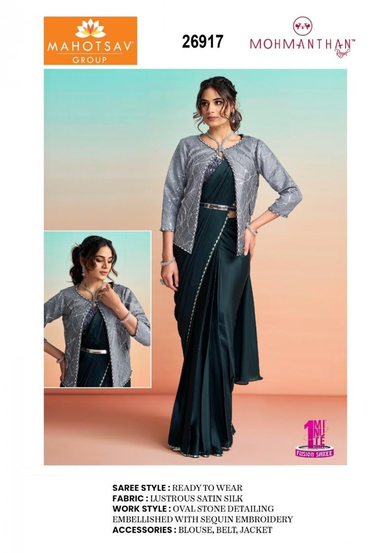 It Keeps Customer engage. mahotsav it girl 26900 series 26906-26919 satin silk ready to wear saree offers.
