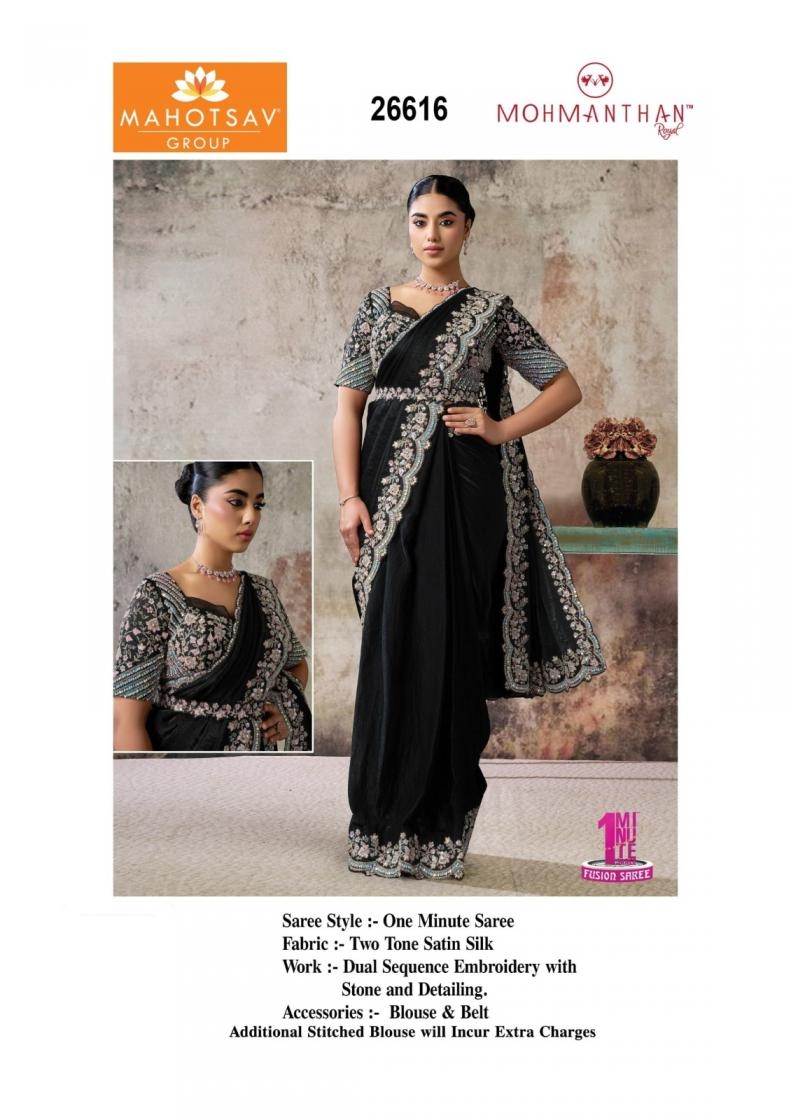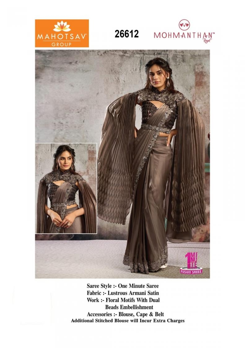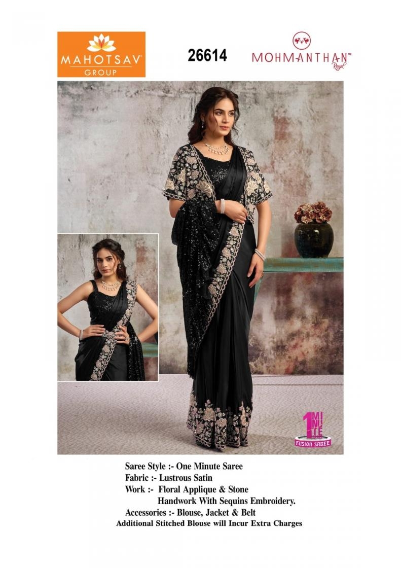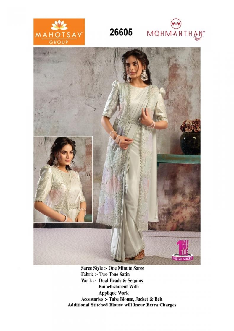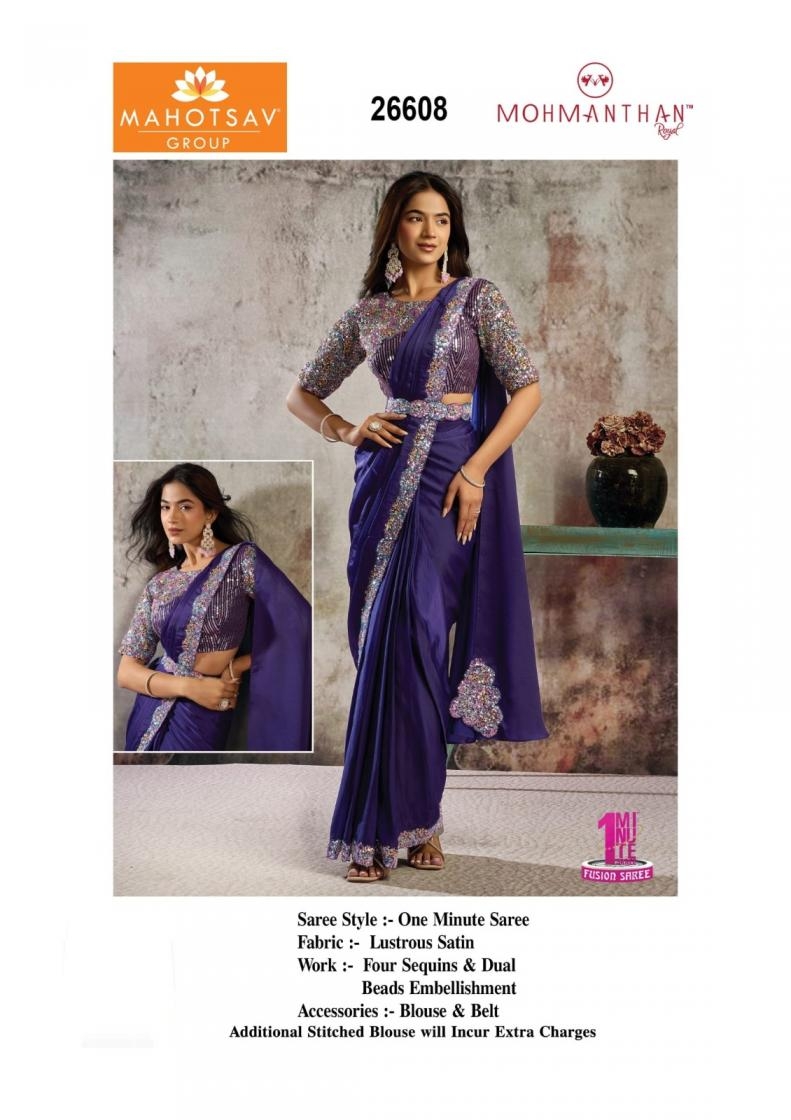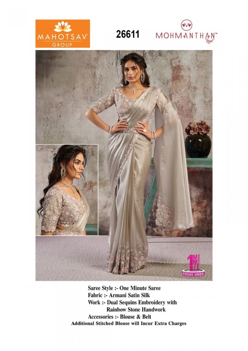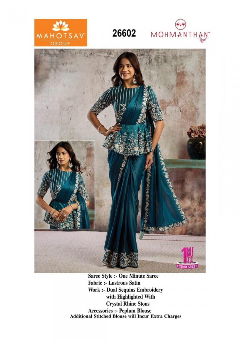 mahotsav selene 26600 series 26601-26617 fancy satin wholesale saree contains superior Fabrics, with perfect craftsmanship makes it one most best quality suits catalogue. Best commitment to ungearing quality.