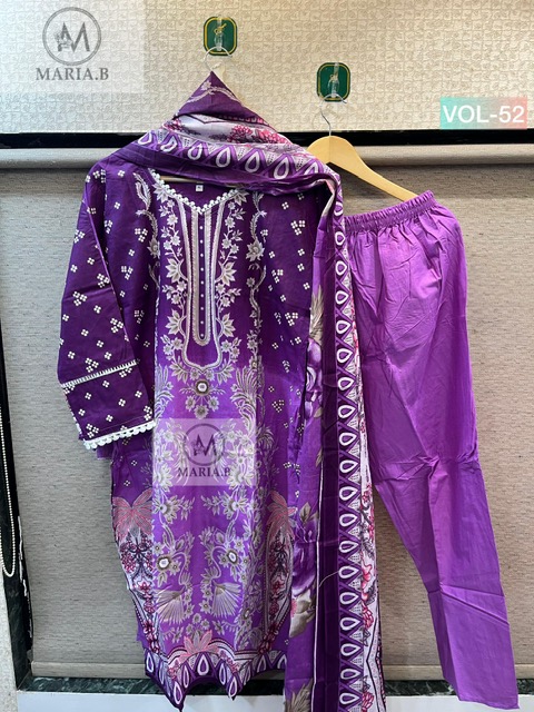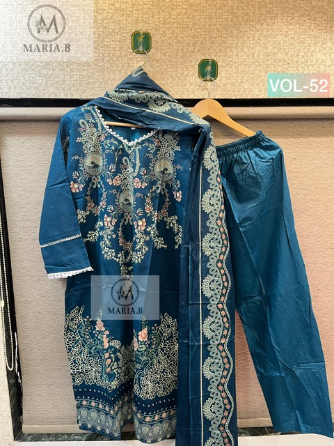 MARIA B STITCH VOL 52 suitable for both variety of styles and age groups. Can be made in different styles like Anarkali’s, sleek straight-cut suits, and classic salwar sets for every occasion. Whether you want it during your bride-to-be, a busy professional, or someone who loves ethnic wear, this designer suit makes you centre of extraction to everyone.