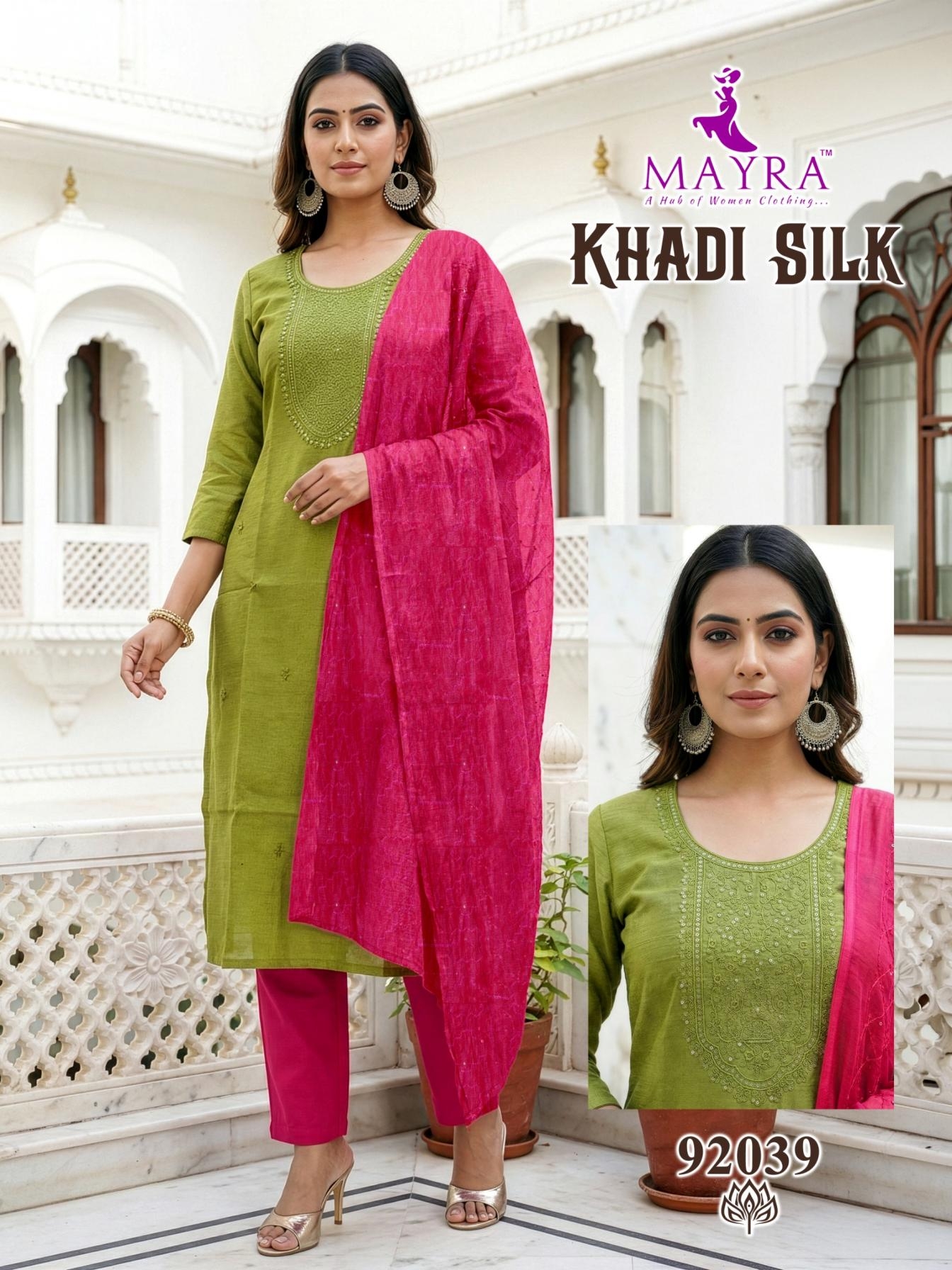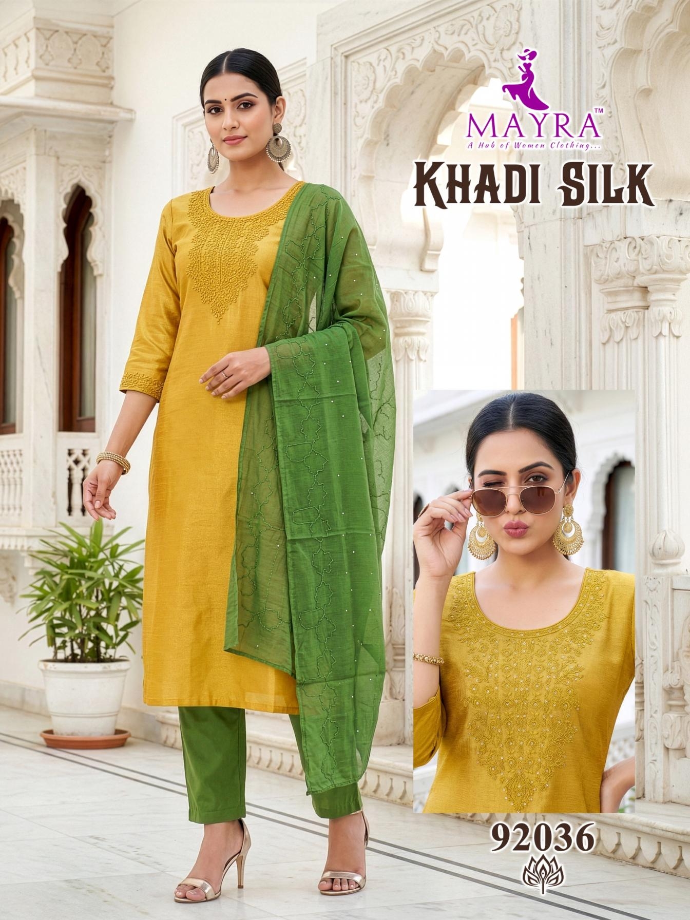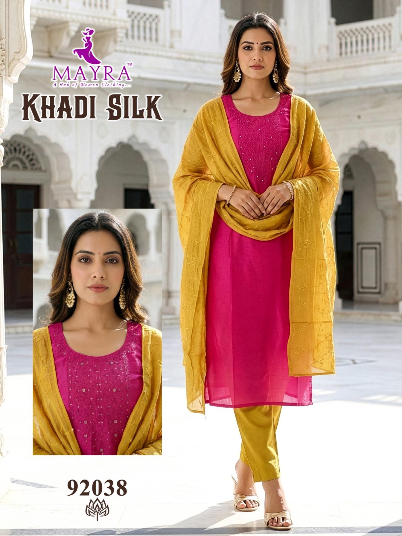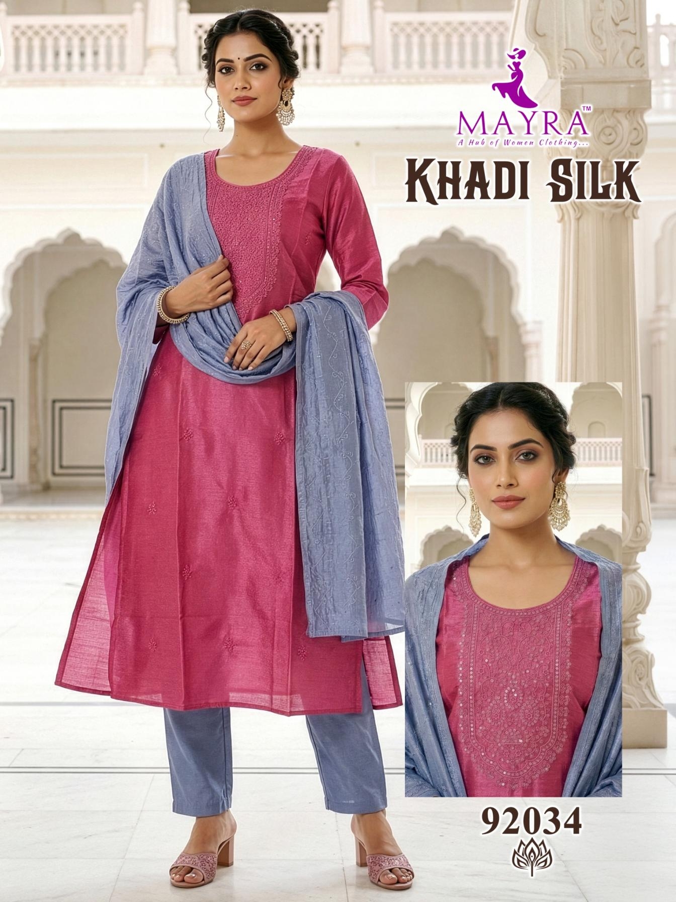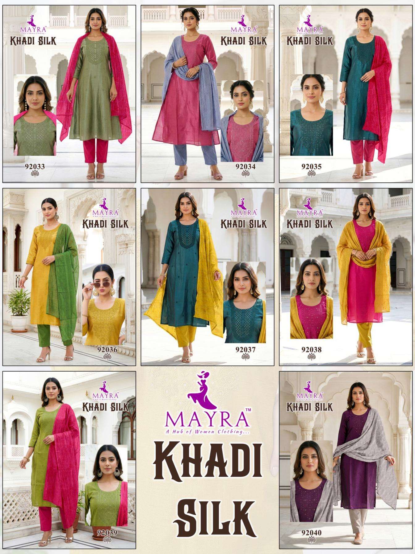 mayra fashion khadi silk series 92033 to 92040 full stitch cotton suit in wholesale surat has a suit design for every event, whether you are going for formal gathering or a casual get-together you can style the collection:
