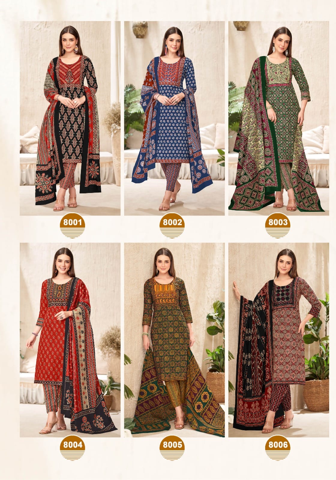 MAYUR CREATION AJARAKH VOL 8 has a suit design for every event, whether you are going for formal gathering or a casual get-together you can style the collection: