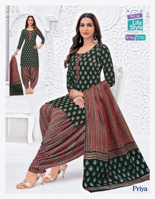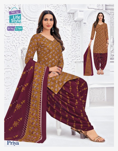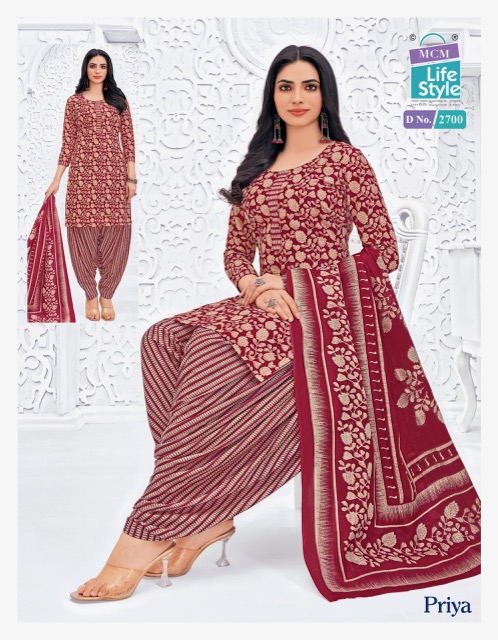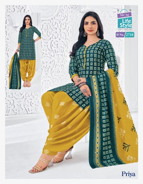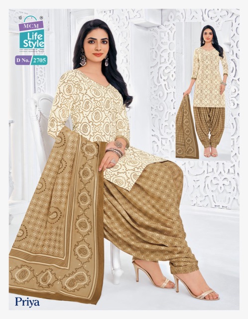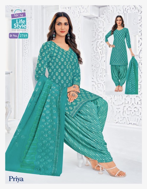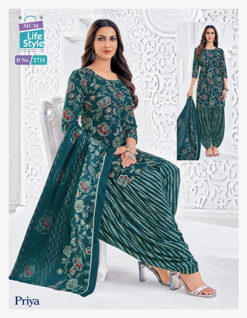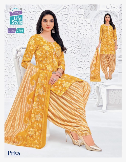 MCM LIFESTYLE PRIYA VOL 27 contains superior Fabrics, with perfect craftsmanship makes it one most best quality suits catalogue. Best commitment to ungearing quality.