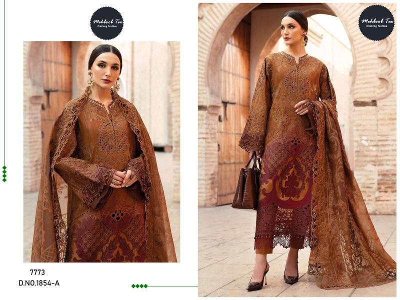 Mehboob Tex 1854 catalog pakistani suits wholesalers in surat contains superior Fabrics, with perfect craftsmanship makes it one most best quality suits catalogue. Best commitment to ungearing quality.
