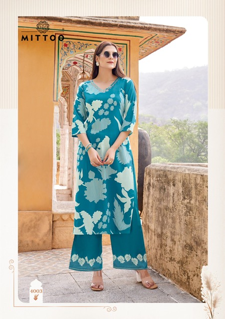 MITTOO NAISHA contains superior Fabrics, with perfect craftsmanship makes it one most best quality suits catalogue. Best commitment to ungearing quality.