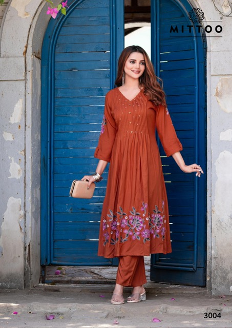 MITTOO TANVIKA contains superior Fabrics, with perfect craftsmanship makes it one most best quality suits catalogue. Best commitment to ungearing quality.