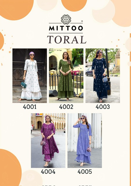 MITTOO TORAL contains superior Fabrics, with perfect craftsmanship makes it one most best quality suits catalogue. Best commitment to ungearing quality.