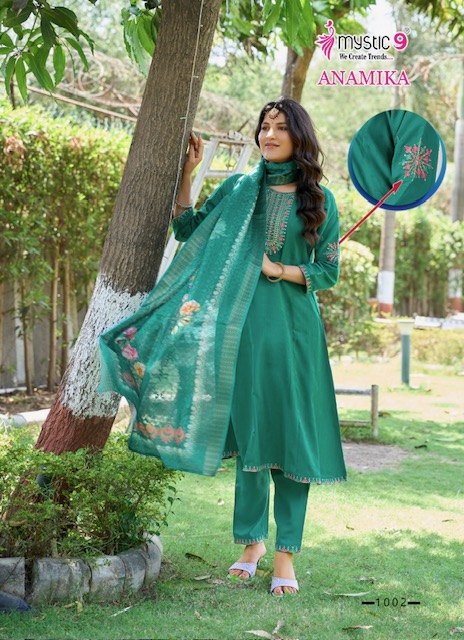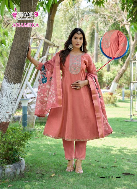 MYSTIC 9 ANAMIKA VOL 1 contains superior Fabrics, with perfect craftsmanship makes it one most best quality suits catalogue. Best commitment to ungearing quality.