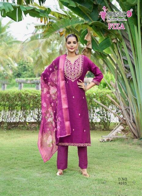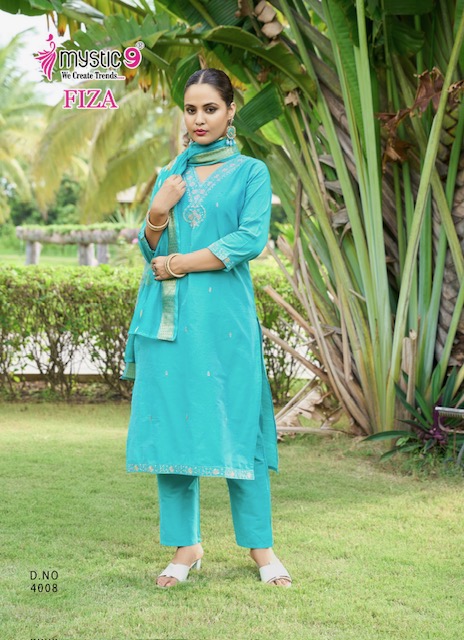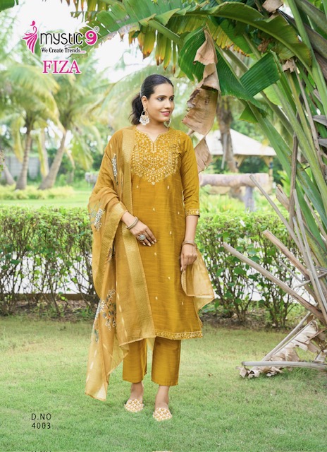 MYSTIC 9 FIZA VOL 4 contains superior Fabrics, with perfect craftsmanship makes it one most best quality suits catalogue. Best commitment to ungearing quality.